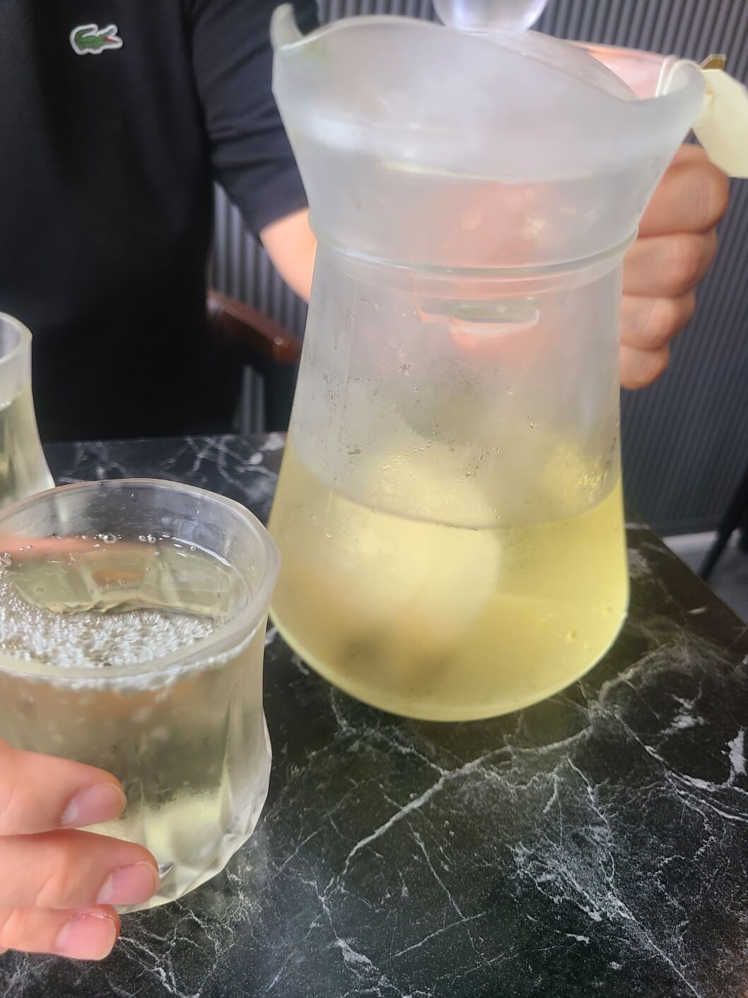 자 들어와서 물부터 따라줍니다. 일반 물은 아니고 현미 녹차였는데 더운 날씨에 엄청 시원하고 고소했습니다.